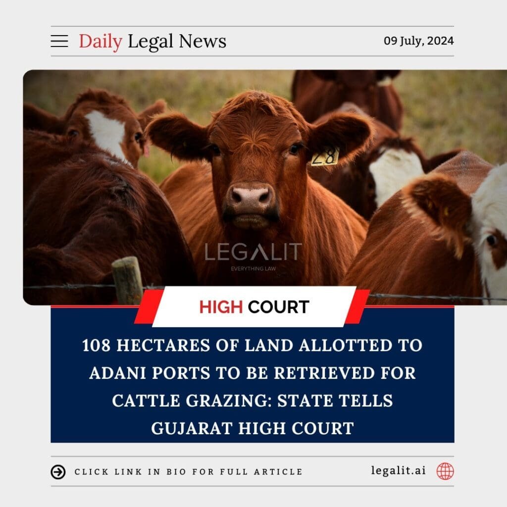 In a significant development, the Gujarat state government informed the Gujarat High Court that it intends to retrieve 108 hectares of land previously allotted to Adani Ports. The land will be repurposed for cattle grazing, addressing the needs of local communities who depend on this land for their livestock.