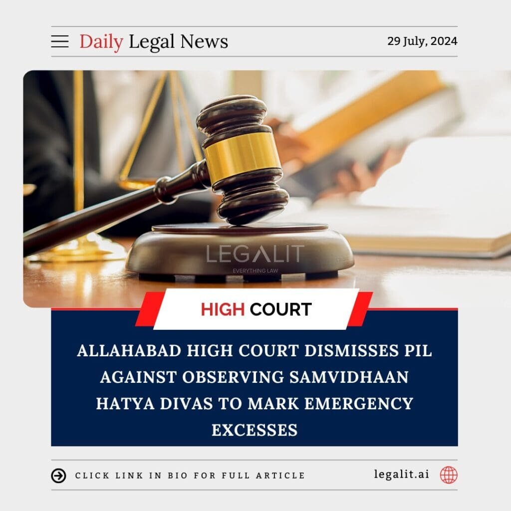 In a significant ruling, the Allahabad High Court has dismissed a Public Interest Litigation (PIL) challenging the observance of Samvidhaan Hatya Divas (Constitution Murder Day) to commemorate the excesses committed during the Emergency period in India. This decision underscores the court’s stance on the importance of acknowledging historical events and the right to observe days of remembrance.