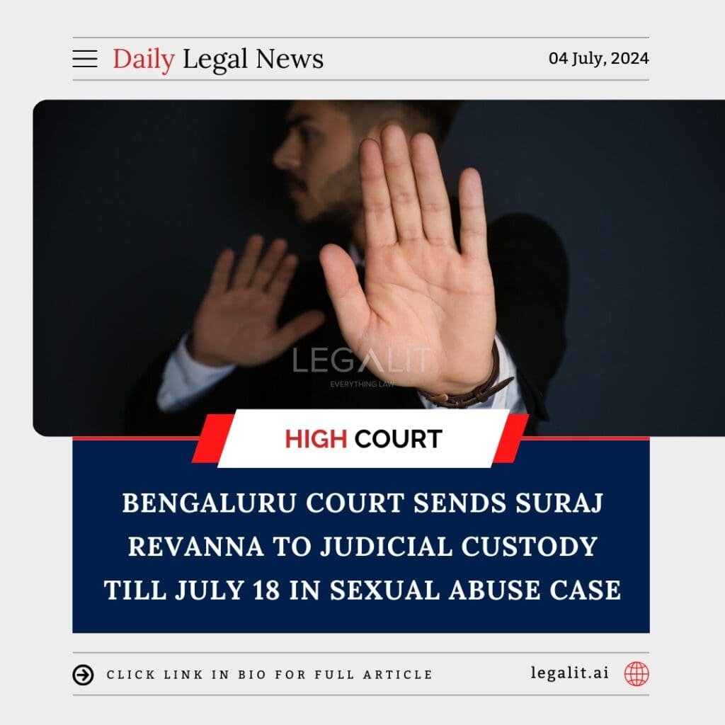 A Bengaluru court has ordered the judicial custody of Suraj Revanna, a Member of the Legislative Council (MLC) from the Janata Dal (Secular) party, until July 18 in connection with a sexual abuse case. The decision follows allegations that Revanna engaged in sexual misconduct with a male party worker.