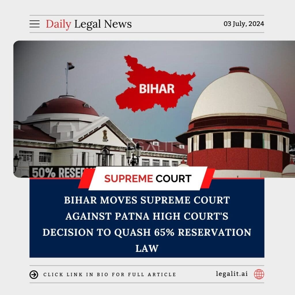 The Bihar government has approached the Supreme Court, challenging the Patna High Court’s decision to strike down the state’s law that increased reservations to 65% for Scheduled Castes (SC), Scheduled Tribes (ST), Other Backward Classes (OBC), and Extremely Backward Classes (EBC). The move follows a significant legal setback for the state government, which had passed the Bihar Reservation Amendment Bill in 2023.