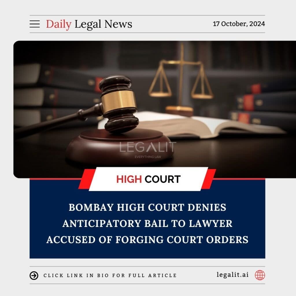 The Bombay High Court has denied anticipatory bail to a lawyer who stands accused of misleading a client by presenting forged court orders. This ruling emphasizes the judiciary’s commitment to maintaining the integrity of the legal profession and protecting the trust placed in legal practitioners.