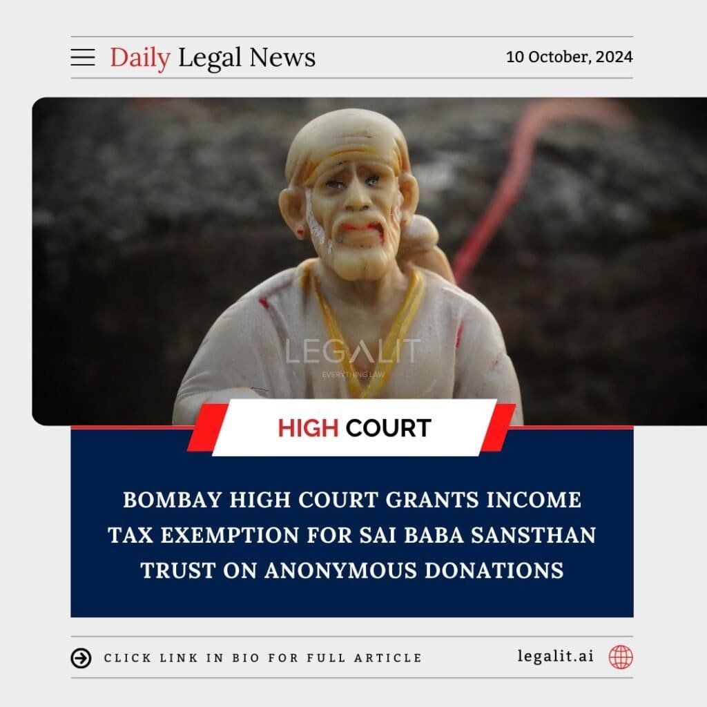 The Bombay High CourtтАЩs decision to grant income tax exemption to the Sai Baba Sansthan Trust on anonymous donations reflects the court’s acknowledgment of the trust’s charitable and religious nature. It is a landmark ruling that could provide financial relief to other similar trusts across the country while promoting religious and charitable activities. The judgment also encourages reforms to maintain transparency and accountability in managing anonymous donations.