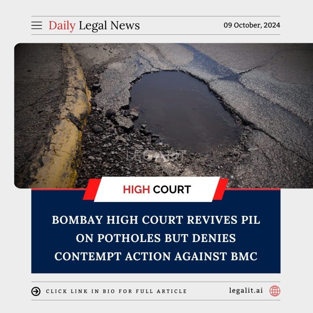 In a significant development, the Bombay High Court has revived a Public Interest Litigation (PIL) addressing the persistent issue of potholes in Mumbai. However, the court has refrained from taking contempt action against the Brihanmumbai Municipal Corporation (BMC), which has faced criticism for its inadequate response to the issue.