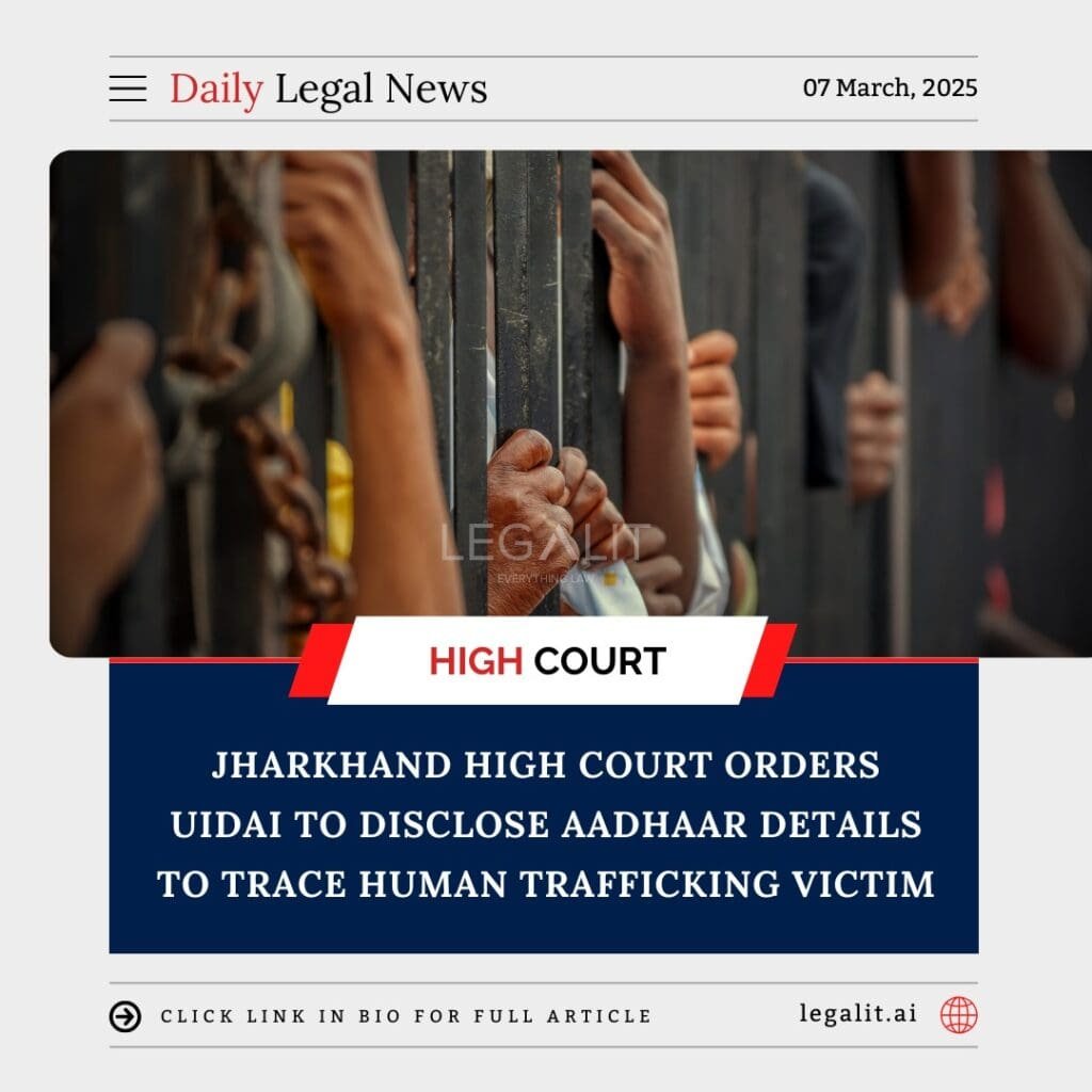 Jharkhand High Court Orders UIDAI to Disclose Aadhaar Details to Trace Human Trafficking Victim