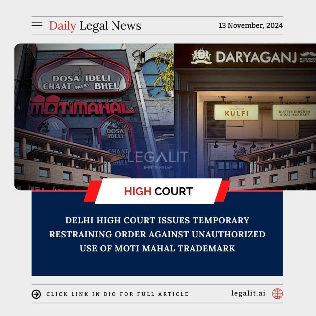 Delhi High Court Issues Temporary Restraining Order Against Unauthorized Use of Moti Mahal Trademark