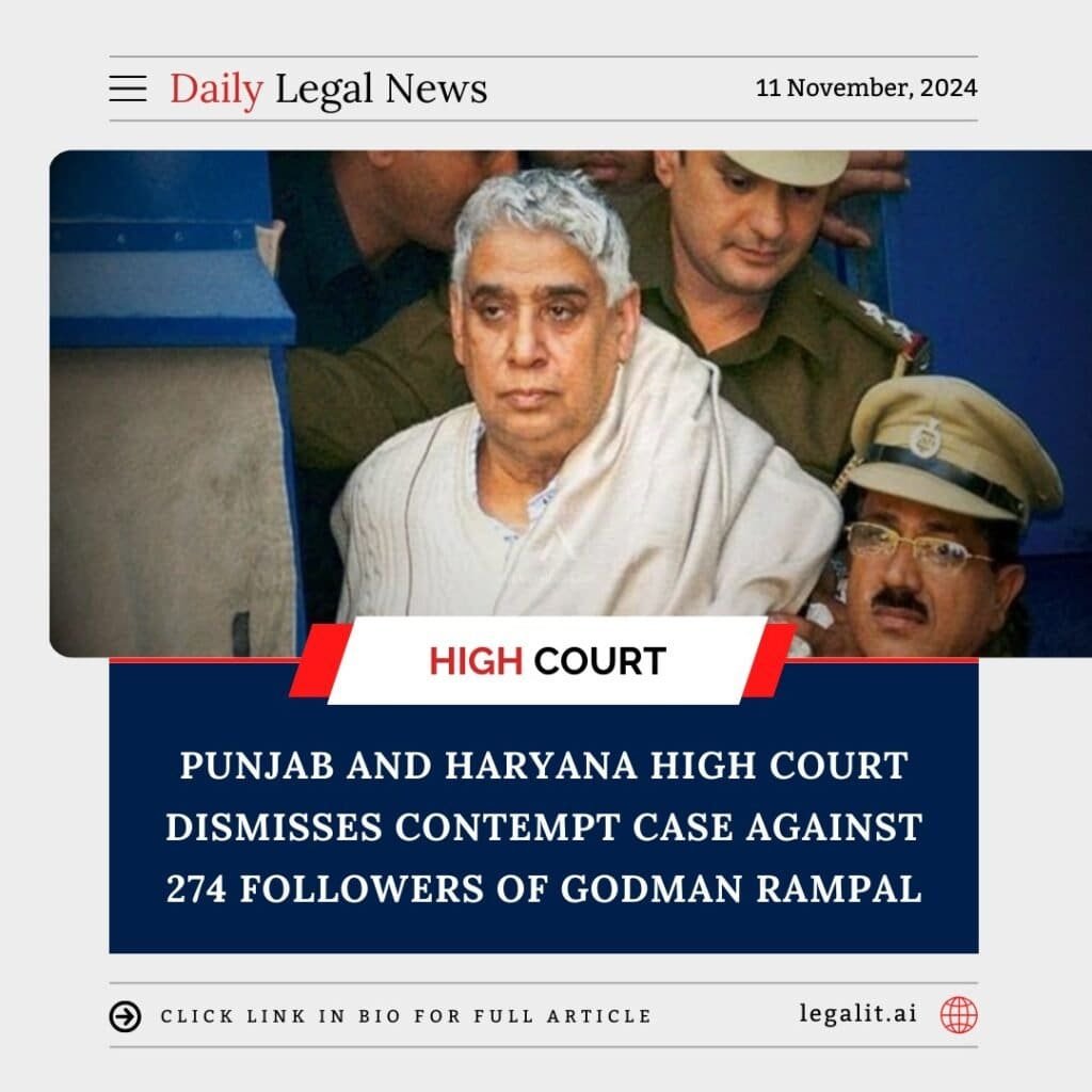Punjab and Haryana High Court Dismisses Contempt Case Against 274 Followers of Godman Rampal