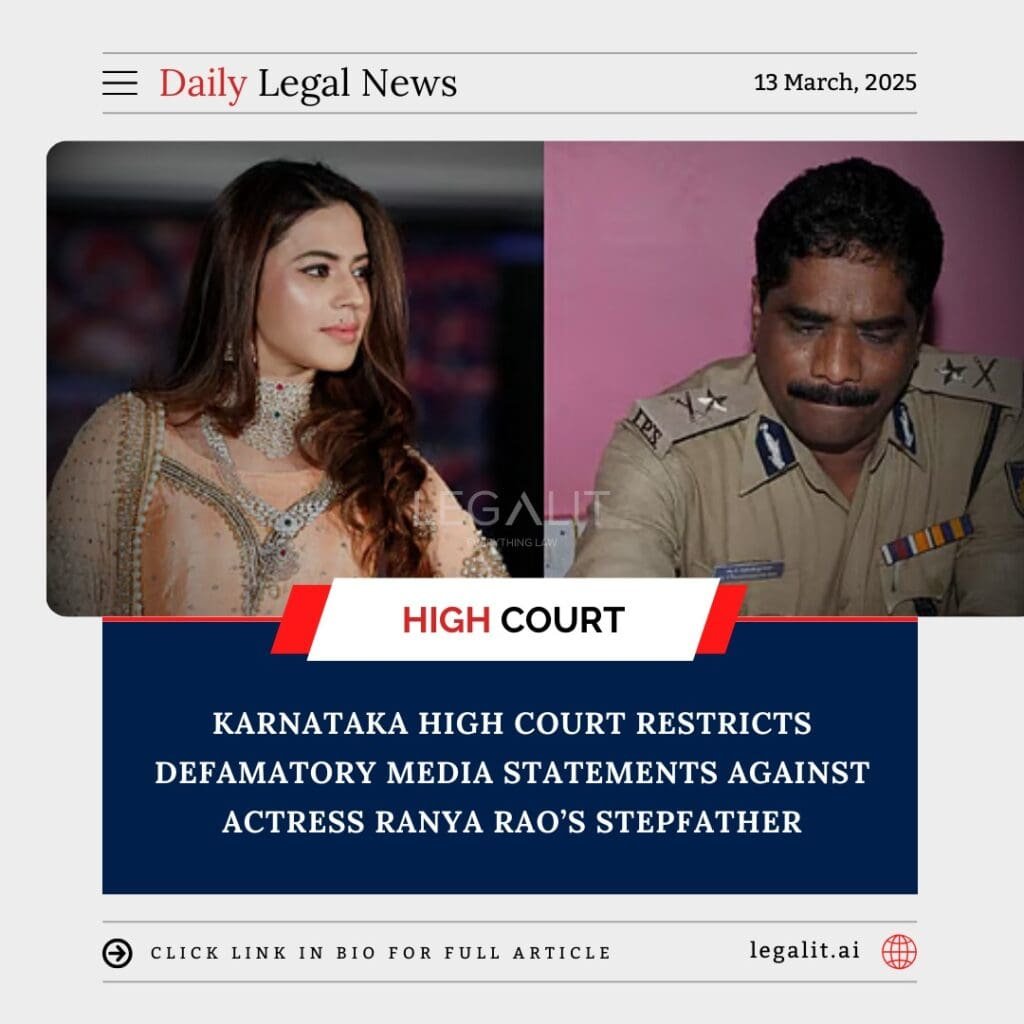 Background The Karnataka High Court has issued an order restraining media houses and individuals from making defamatory statements against the stepfather of actress Ranya Rao. The court’s directive comes in response to a petition filed by the stepfather, who alleged that various media platforms were circulating false and malicious content against him, causing harm to