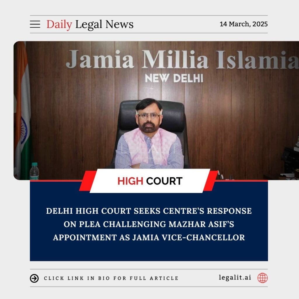 Background The Delhi High Court has sought a response from the Central Government regarding a petition challenging the appointment of Mazhar Asif as the Vice-Chancellor of Jamia Millia Islamia University. The plea, filed by a concerned petitioner, questions the legality and procedural correctness of the selection process, arguing that Asif’s appointment did not adhere to