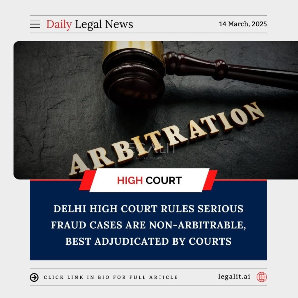 Delhi High Court Rules Serious Fraud Cases Are Non-Arbitrable, Best Adjudicated by Courts