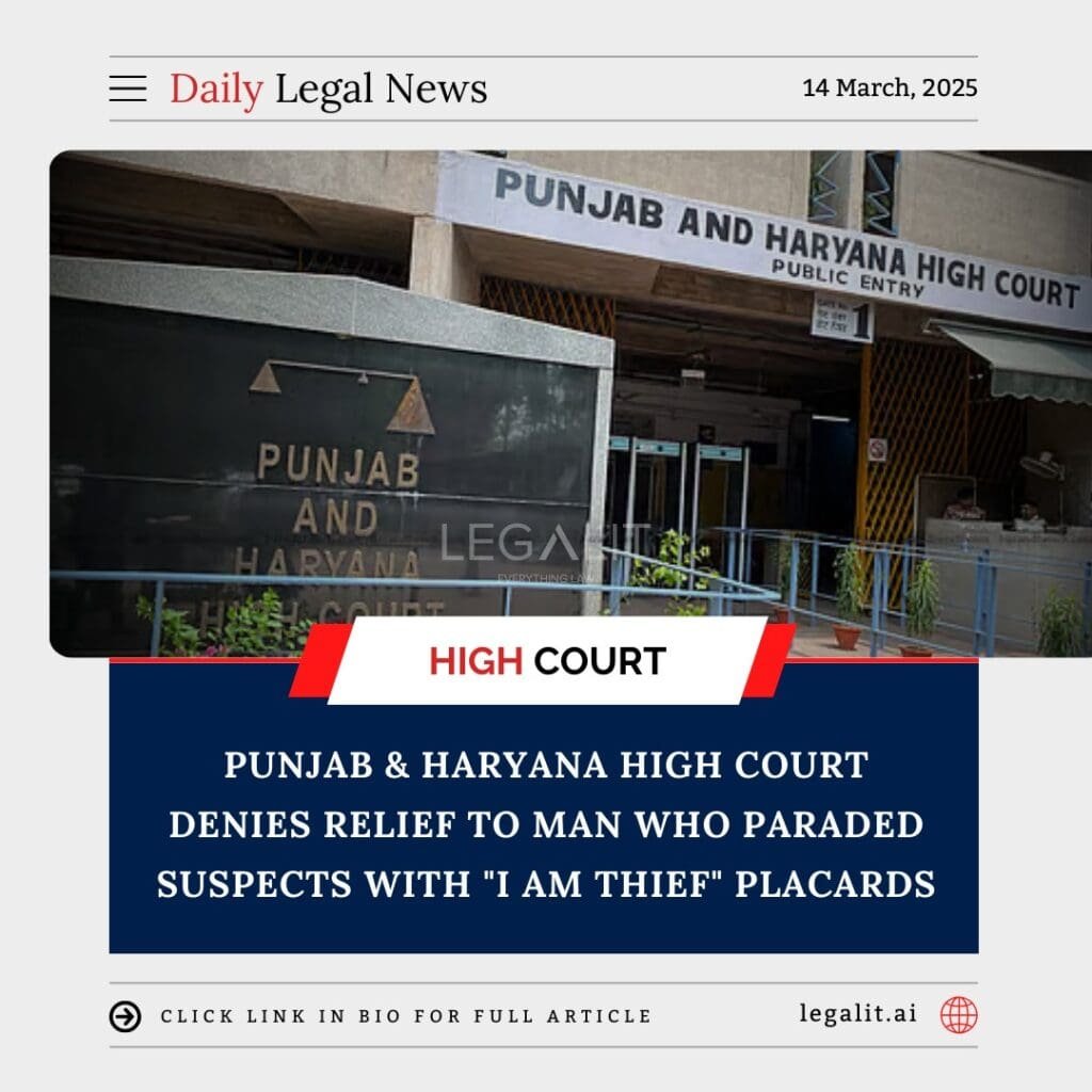 Punjab & Haryana High Court Denies Relief to Man Who Paraded Suspects with “I Am Thief” Placards