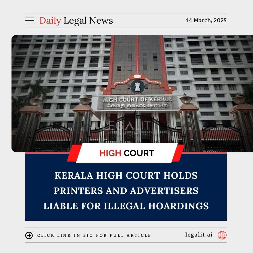 Background The Kerala High Court has ruled that printing agencies and advertisers will be held accountable for illegal hoardings put up by their clients. The judgment comes in response to increasing concerns over unregulated advertisements that obstruct public spaces, violate municipal regulations, and contribute to urban clutter. The case was brought before the court after
