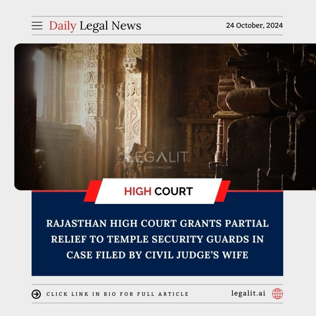Rajasthan High Court Grants Partial Relief to Temple Security Guards in Case Filed by Civil Judge’s Wife