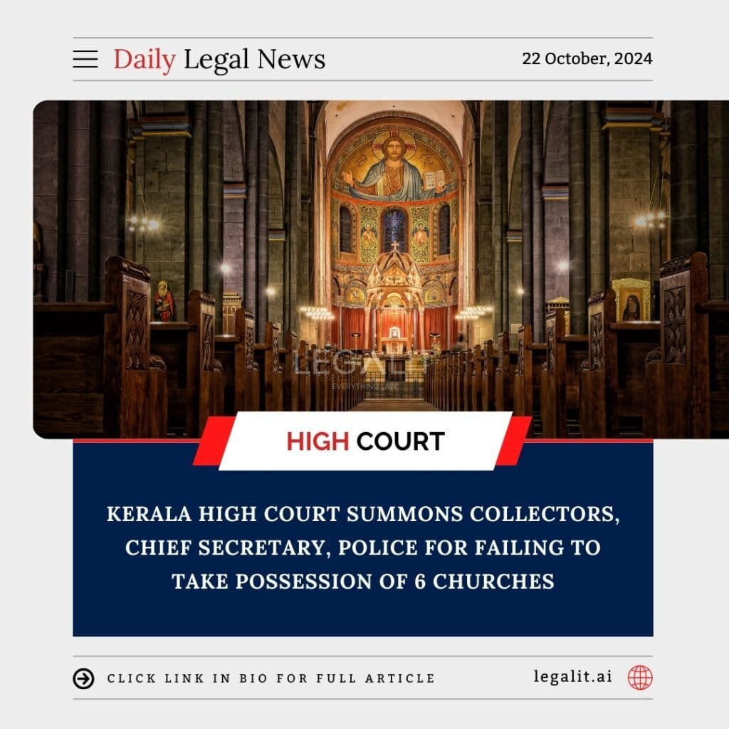 Kerala High Court Summons Collectors, Chief Secretary, Police for Failing to Take Possession of 6 Churches