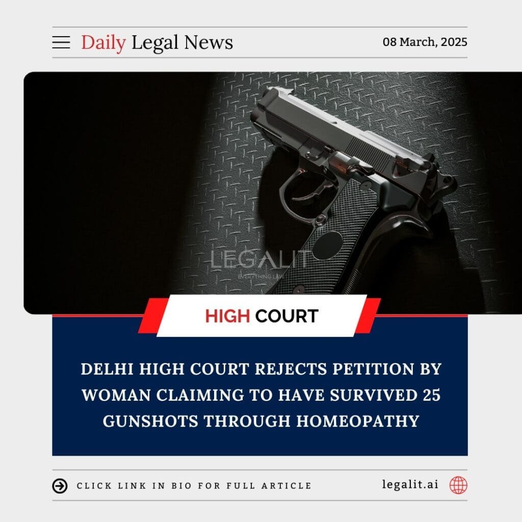 Delhi High Court Rejects Petition by Woman Claiming to Have Survived 25 Gunshots Through Homeopathy Read More »