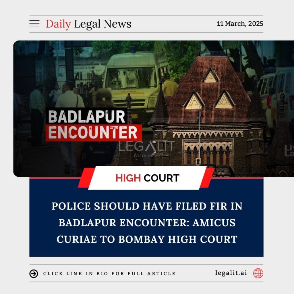 Background The Bombay High Court, while hearing a case regarding the alleged encounter in Badlapur, was informed by the Amicus Curiae (court-appointed legal advisor) that the police should have registered a First Information Report (FIR) in connection with the incident. The case revolves around an encounter killing by law enforcement officials, raising concerns about whether