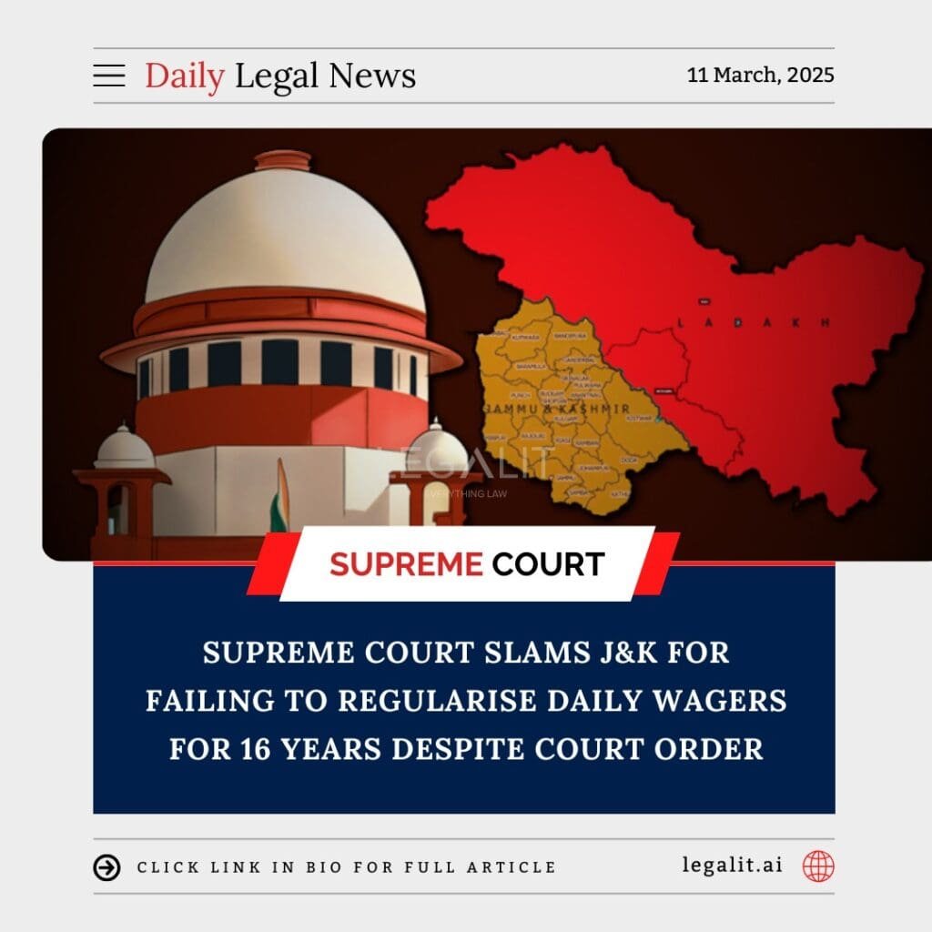 Background The Supreme Court has strongly criticized the Jammu & Kashmir administration for its prolonged failure to regularize daily wage workers, despite a court directive issued 16 years ago. The case concerns thousands of workers who have been engaged in various government departments on a daily wage basis but have not been granted permanent employment,
