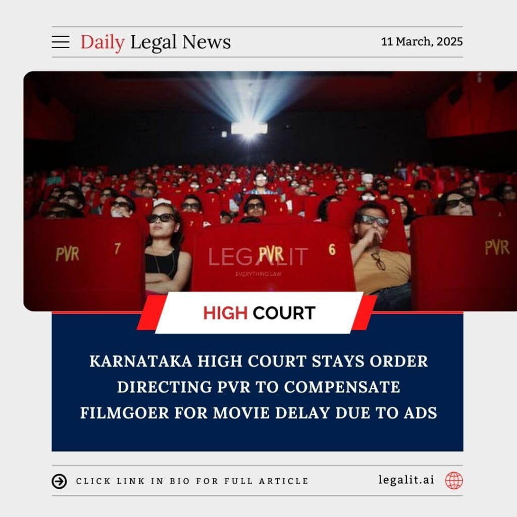 Karnataka High Court Stays Order Directing PVR to Compensate Filmgoer for Movie Delay Due to Ads Read More »