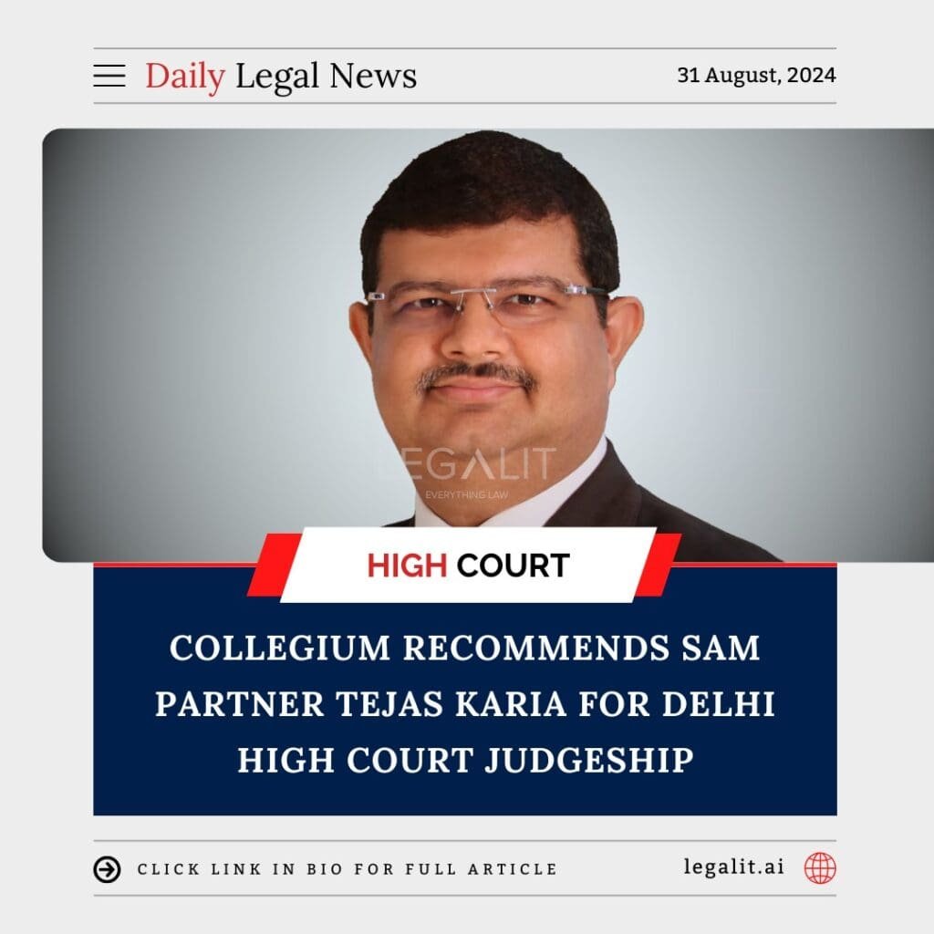 In a notable development for the Indian judiciary, the Supreme Court Collegium has recommended the appointment of Tejas Karia, a prominent partner at Shardul Amarchand Mangaldas (SAM), as a judge of the Delhi High Court. This recommendation marks a significant milestone in Karia’s distinguished legal career and highlights his esteemed reputation within the legal community.