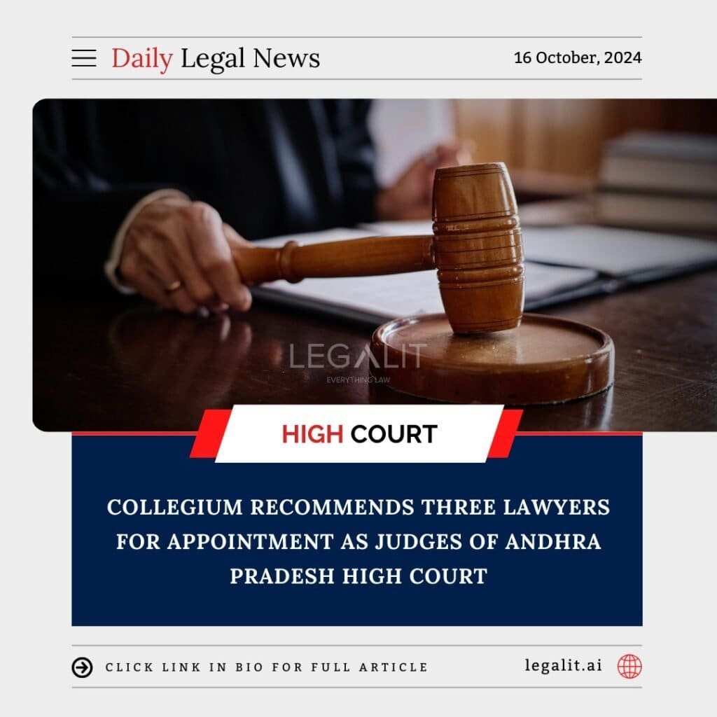 The Collegium’s recommendation of three lawyers for judicial appointments in the Andhra Pradesh High Court reflects a commitment to strengthening the judiciary by bringing in qualified individuals who are dedicated to serving the public. As these appointments move forward, the legal community and the public will be hopeful for positive changes in the court’s operations and service delivery.