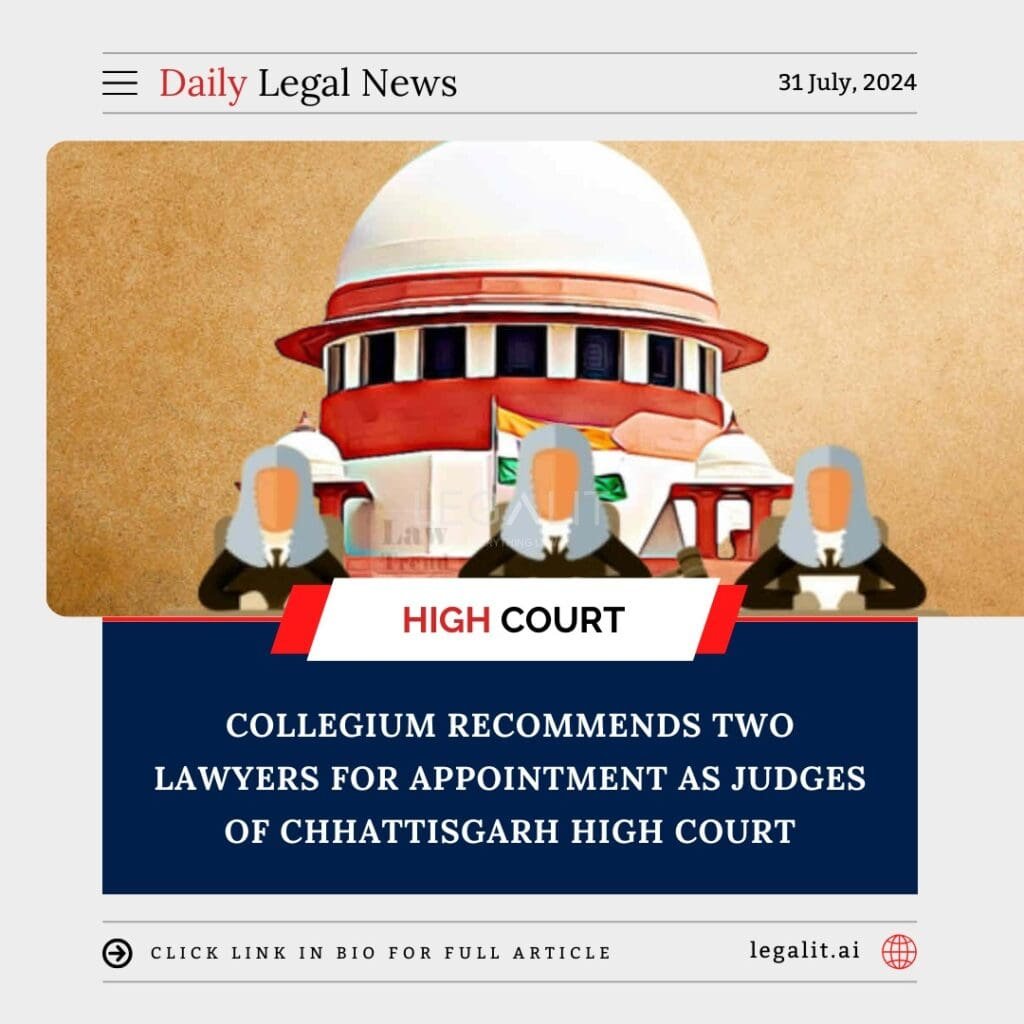 In a significant step towards bolstering the judiciary, the Supreme Court Collegium has recommended the appointment of two distinguished lawyers as judges of the Chhattisgarh High Court. This recommendation underscores the Collegium’s ongoing efforts to ensure that the judiciary is equipped with experienced and competent legal professionals capable of upholding justice and the rule of law.