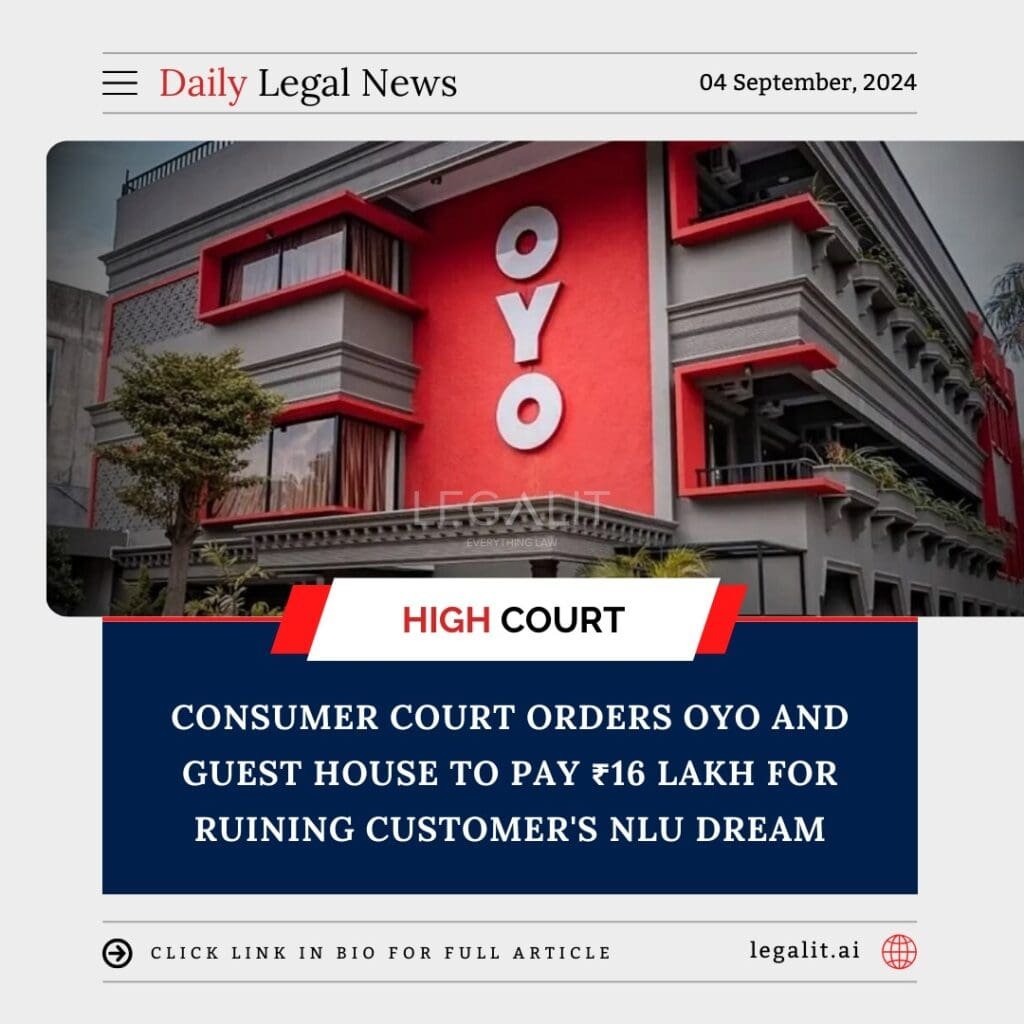 A consumer court recently ordered OYO Rooms, a prominent online hospitality service provider, and a guest house in Delhi to pay ₹16 lakh in damages to a customer whose National Law University (NLU) admission dream was allegedly dashed due to a poor experience during his stay. The judgment highlights the growing scrutiny on service providers in the hospitality sector and underscores the consumer’s right to expect a standard level of service.