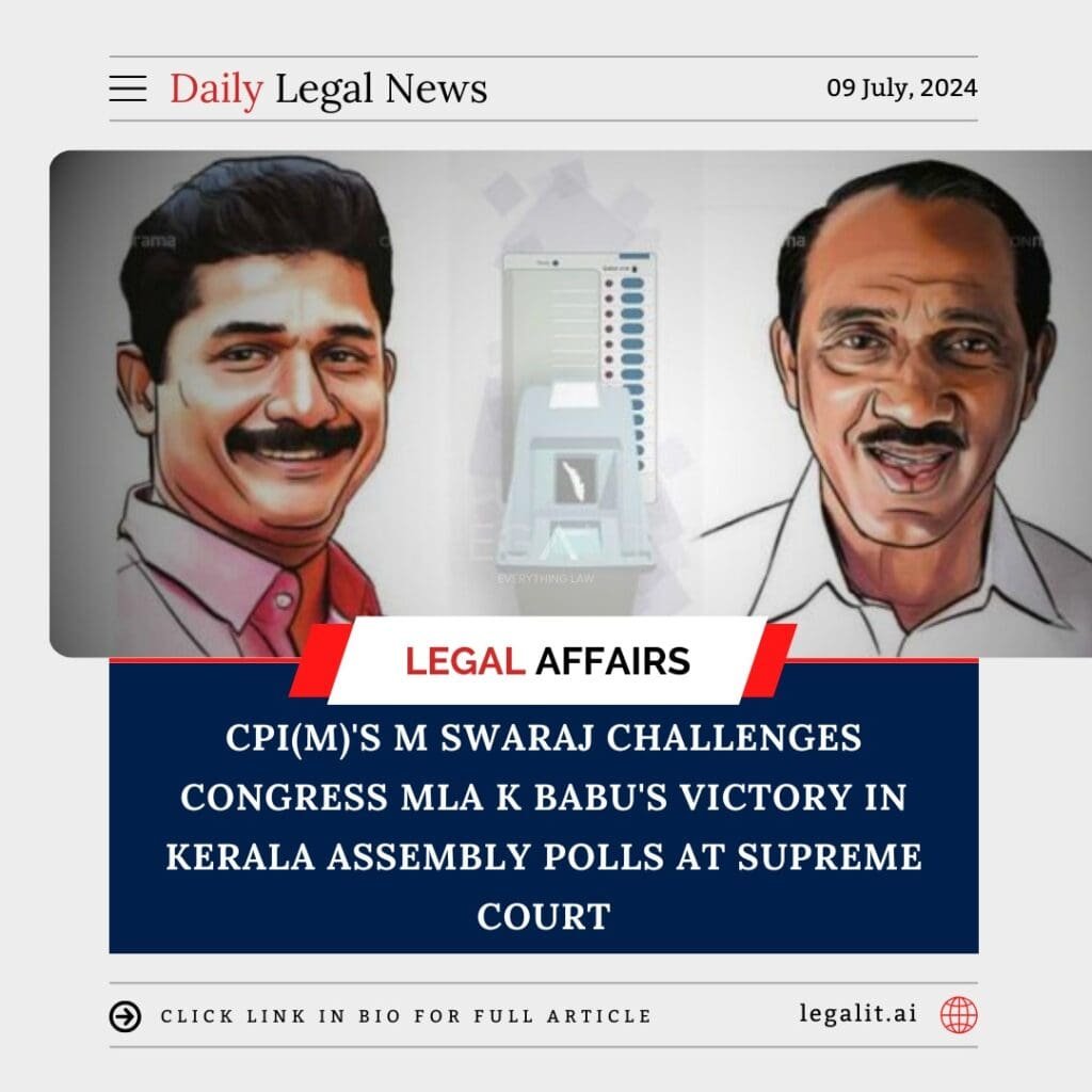 In a significant political development, M Swaraj of the Communist Party of India (Marxist) [CPI(M)] has approached the Supreme Court of India, contesting the election victory of Congress MLA K Babu in the Kerala assembly polls. This legal challenge comes amid allegations of electoral malpractices and seeks to scrutinize the validity of Babu’s win in the tightly contested elections.