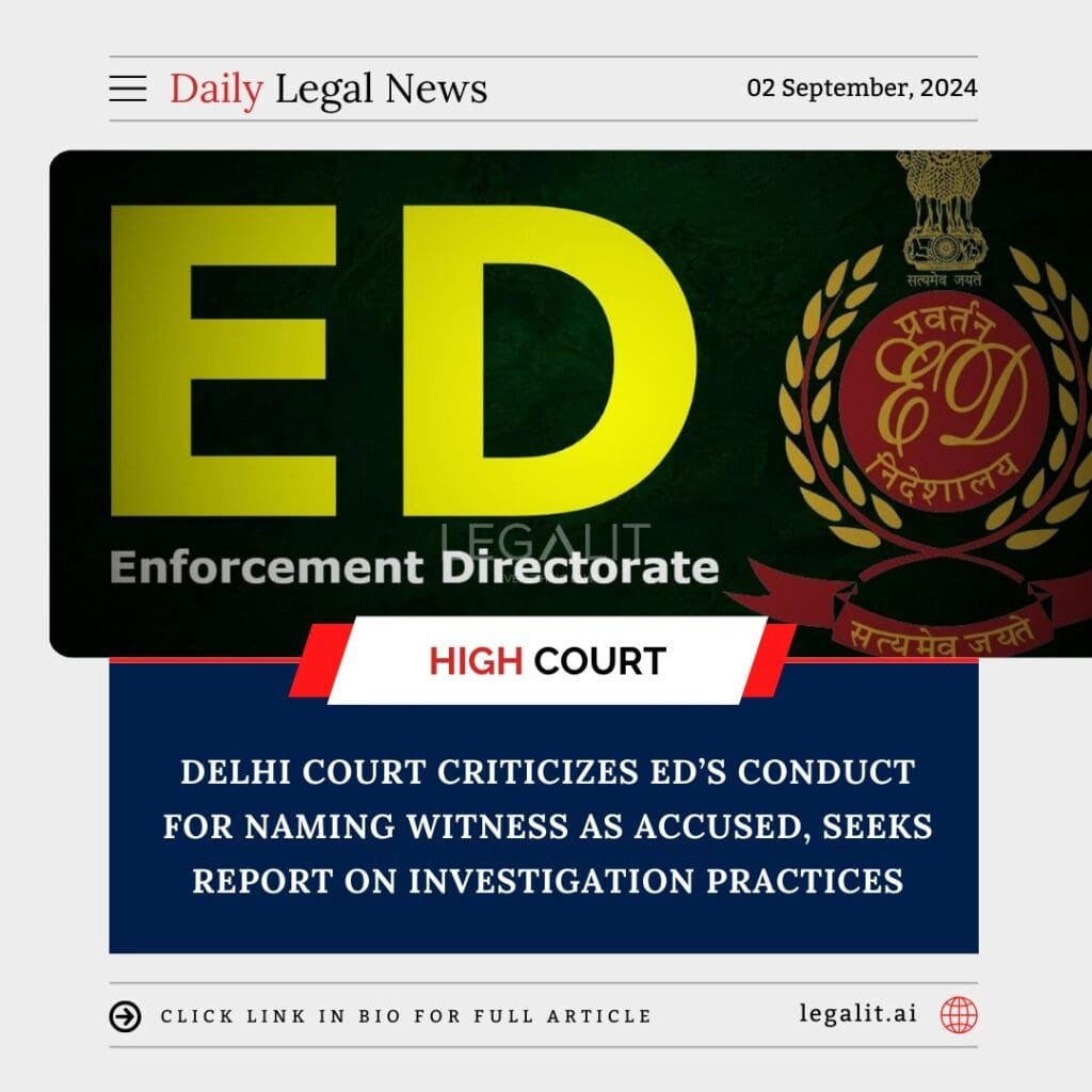 A Delhi court has raised serious concerns over the conduct of the Enforcement Directorate (ED) after it named a person as an accused in a money laundering case, who was initially listed as a witness. The court termed the ED’s actions “disturbing” and has sought a detailed report from the agency explaining its investigation practices and the reasoning behind this sudden shift in position.
