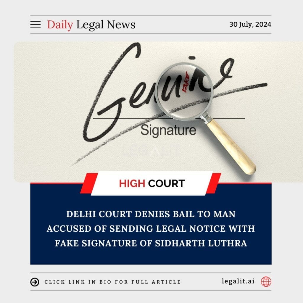 In a significant ruling, a Delhi court has denied bail to a man accused of sending a legal notice bearing the forged signature of prominent lawyer Sidharth Luthra. The case underscores the judiciary’s stringent stance on forgery and the serious legal implications of falsifying legal documents.