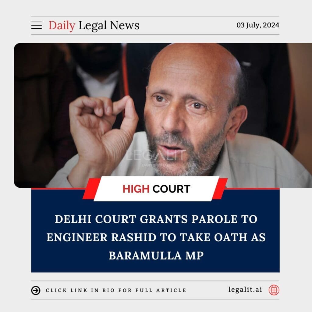 - Parole Grant: The court’s decision to grant parole was influenced by the need to uphold Rashid’s constitutional right to take his oath of office as an MP. The parole allows him to fulfill his parliamentary duties, which is essential for representing his constituents effectively (Sources: New Indian Express, Outlook India).