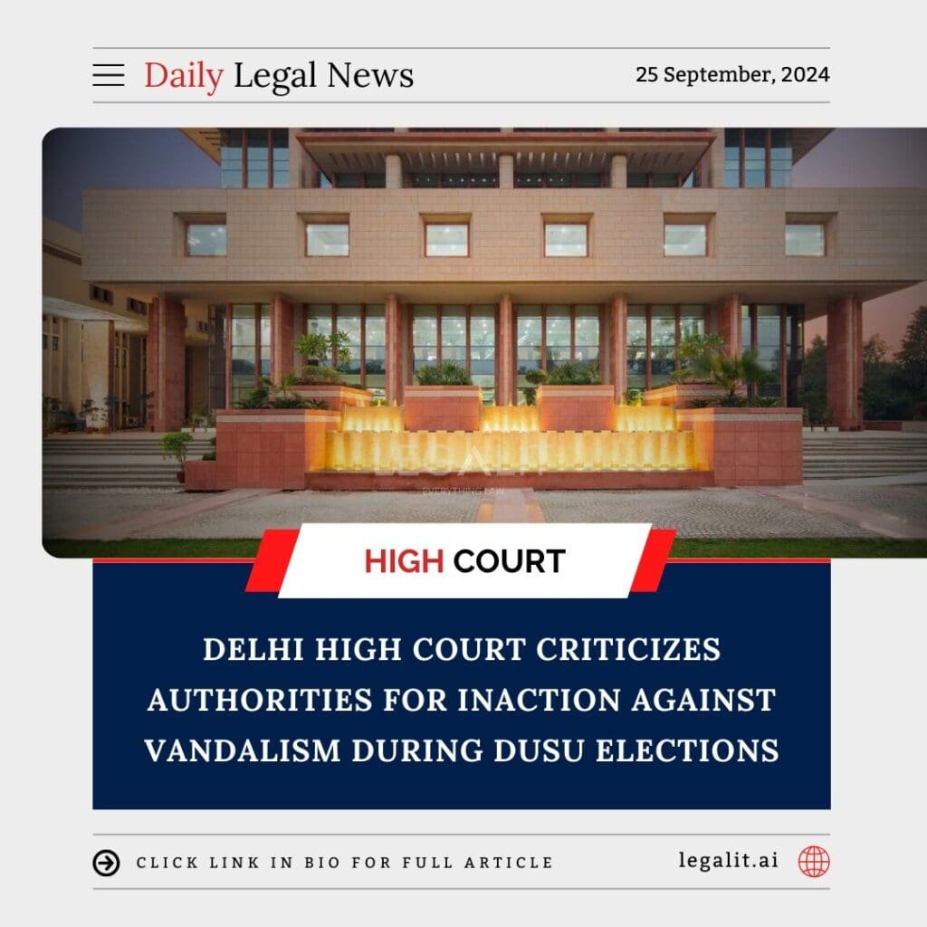 The Delhi High Court has reprimanded the city authorities for their failure to curb incidents of vandalism and maintain law and order during the Delhi University Students’ Union (DUSU) elections. The court expressed its dissatisfaction over the lack of effective measures to prevent property damage and ensure peaceful campaigning during the student body elections.