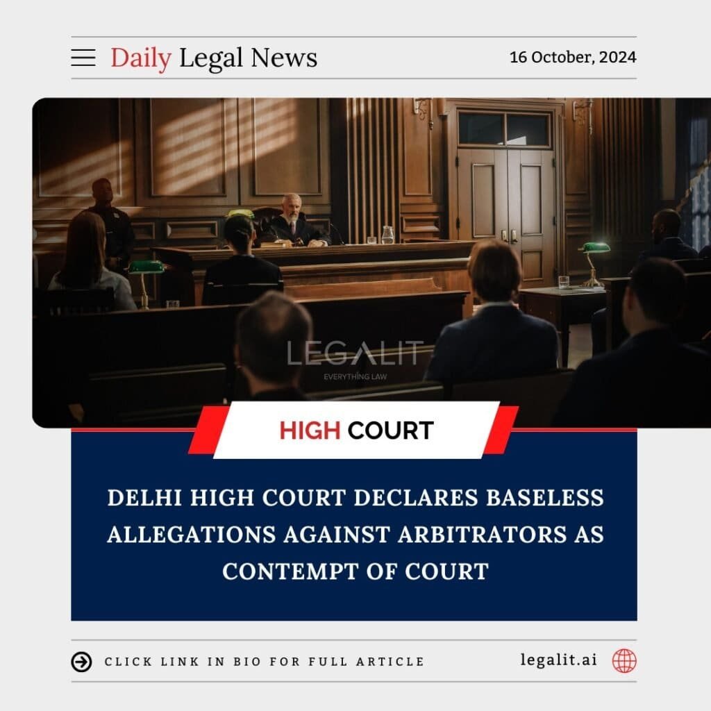 The Delhi High Court has made a significant ruling stating that making baseless allegations against an arbitrator constitutes contempt of court. This decision underscores the importance of maintaining respect and integrity within the arbitration process, which is crucial for the effective resolution of disputes.