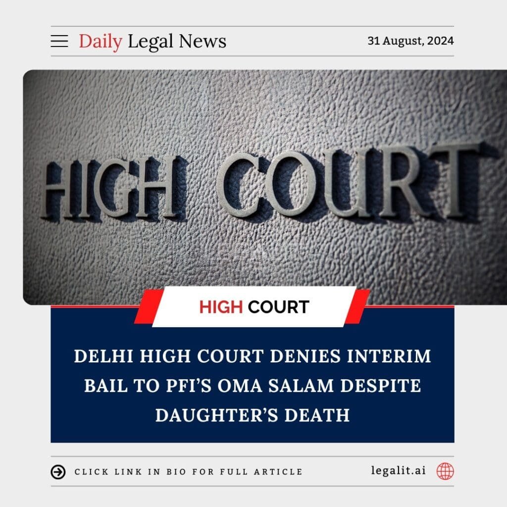In a significant legal development, the Delhi High Court has turned down the interim bail request filed by OMA Salam, a prominent leader of the now-banned Popular Front of India (PFI). Salam had sought temporary release from custody following the death of his daughter, pleading for bail on humanitarian grounds to attend her funeral and be with his grieving family.