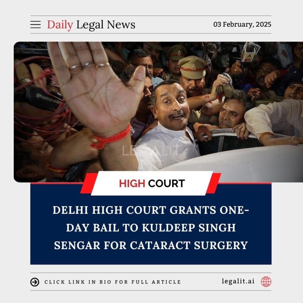 Delhi High Court Grants One-Day Bail to Kuldeep Singh Sengar for Cataract Surgery