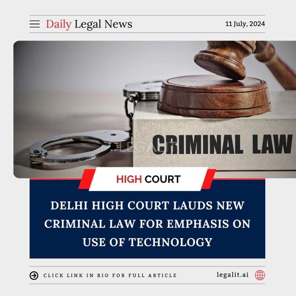 The Delhi High Court has commended the introduction of a new criminal law that significantly emphasizes the use of technology in the criminal justice system. This endorsement highlights the judiciary’s recognition of the potential benefits that technology can bring to the efficiency, transparency, and effectiveness of law enforcement and judicial processes.