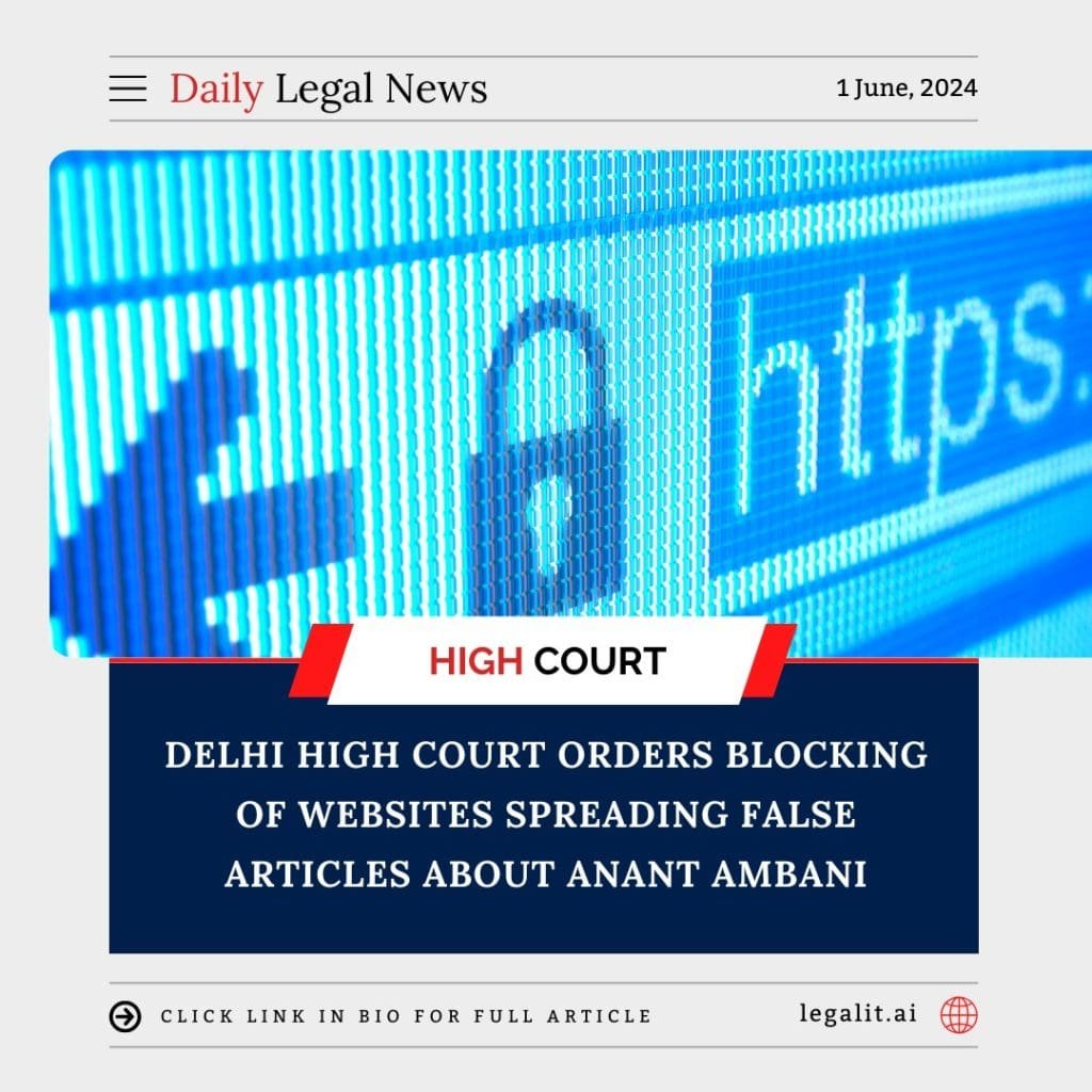 Delhi High Court Orders Blocking of Websites Spreading False Articles About Anant Ambani