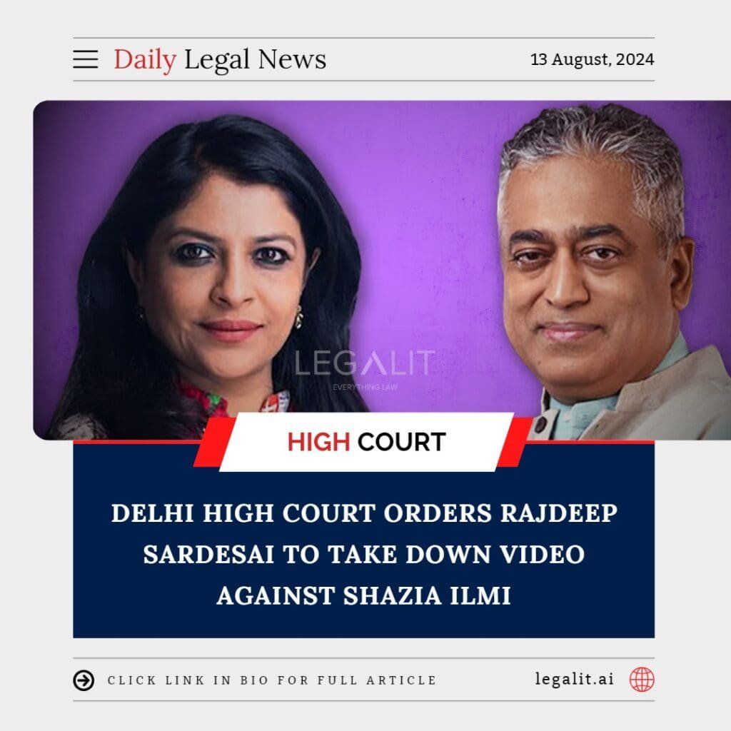 - Order to Take Down the Video: The Delhi High Court ruled in favor of Shazia Ilmi, directing Rajdeep Sardesai to take down the video from all platforms where it was posted. The court found that the content of the video was likely defamatory and could cause irreparable harm to Ilmi’s reputation.