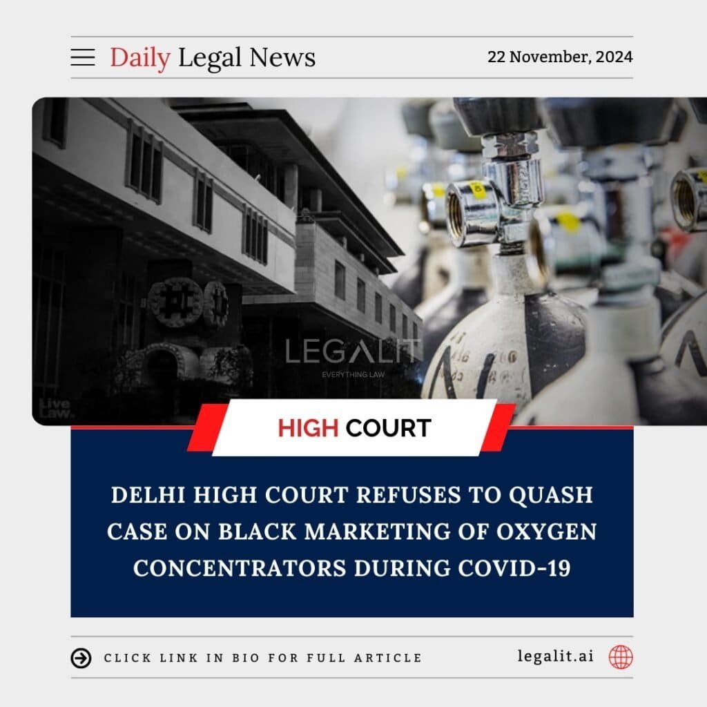 The Delhi High Court has declined to quash a case related to the black marketing of oxygen concentrators during the COVID-19 pandemic. The case involves allegations of hoarding and illegal sale of vital medical equipment when it was in high demand due to the surge in cases.