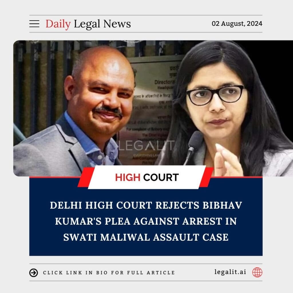 In a significant legal development, the Delhi High Court has rejected the plea filed by Bibhav Kumar, an aide to Delhi Chief Minister Arvind Kejriwal, against his arrest in connection with the Swati Maliwal assault case. This decision underscores the court’s stance on the allegations and highlights the ongoing judicial process related to the high-profile case.