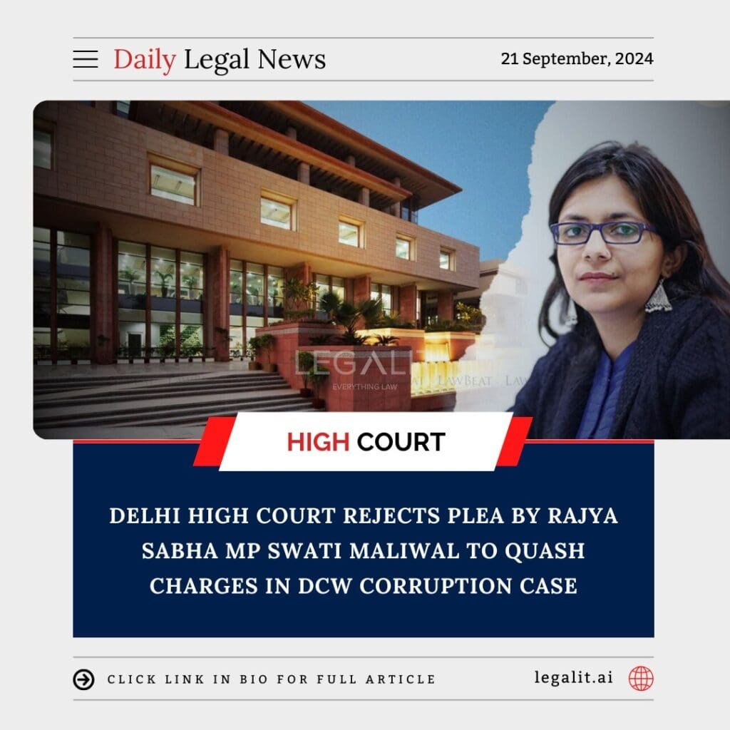 The Delhi High Court has dismissed a plea filed by Swati Maliwal, a member of the Rajya Sabha and former chairperson of the Delhi Commission for Women (DCW), seeking to quash the corruption charges against her in a case involving alleged financial irregularities during her tenure at the DCW.