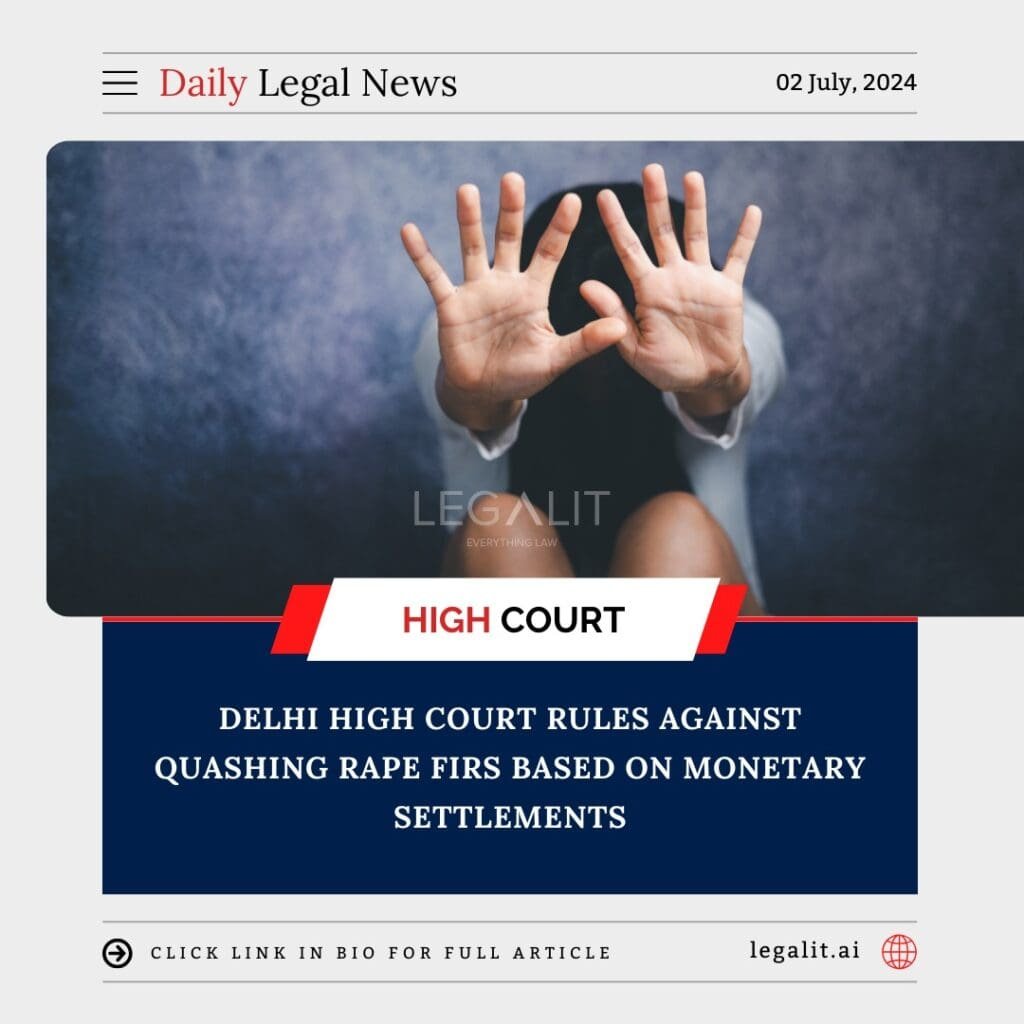 The Delhi High Court has ruled that First Information Reports (FIRs) for serious offenses such as rape cannot be quashed based on monetary settlements between the parties involved. This decision emphasizes that such heinous crimes impact society at large and cannot be treated as private matters resolved through financial compensation.
