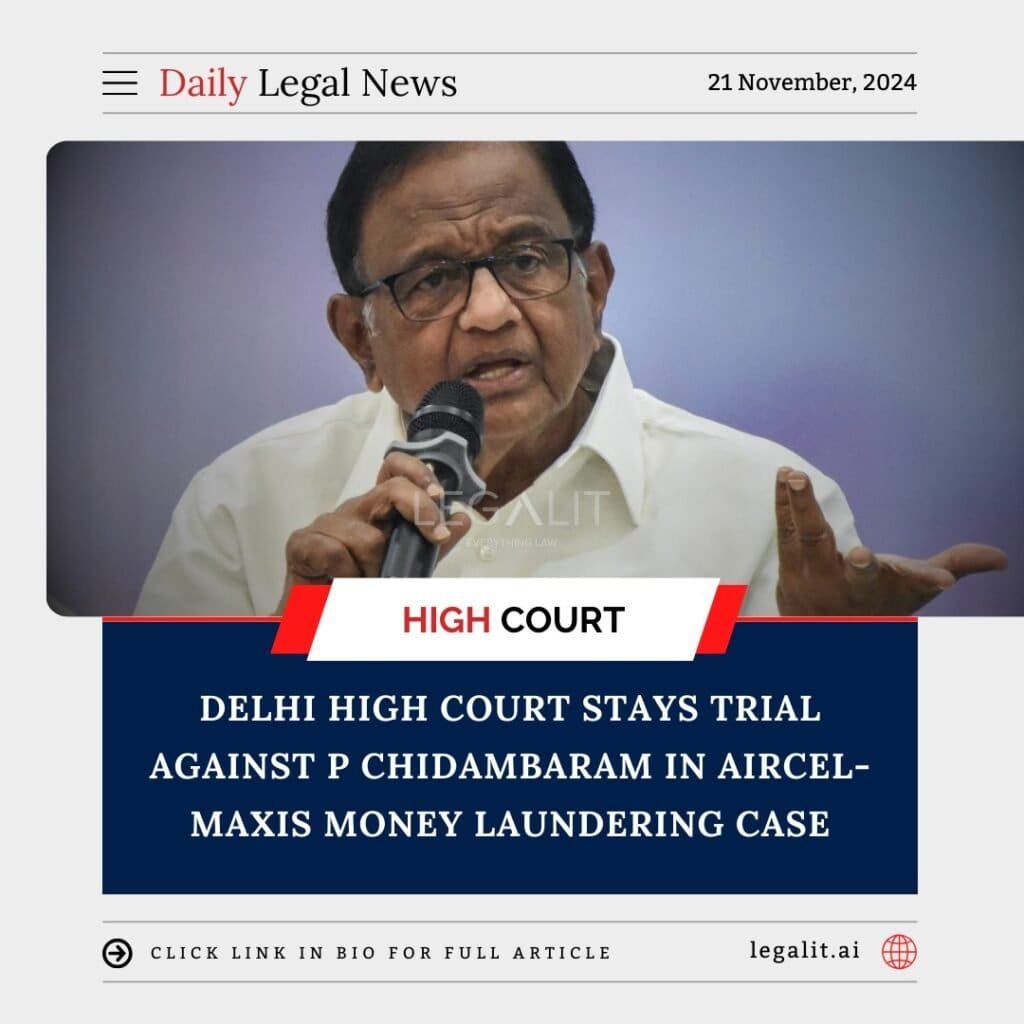 The Delhi High Court has stayed the trial proceedings against former Union Minister P Chidambaram in the Aircel-Maxis money laundering case. The court’s decision comes in response to Chidambaram’s plea challenging the proceedings initiated by the Enforcement Directorate (ED).