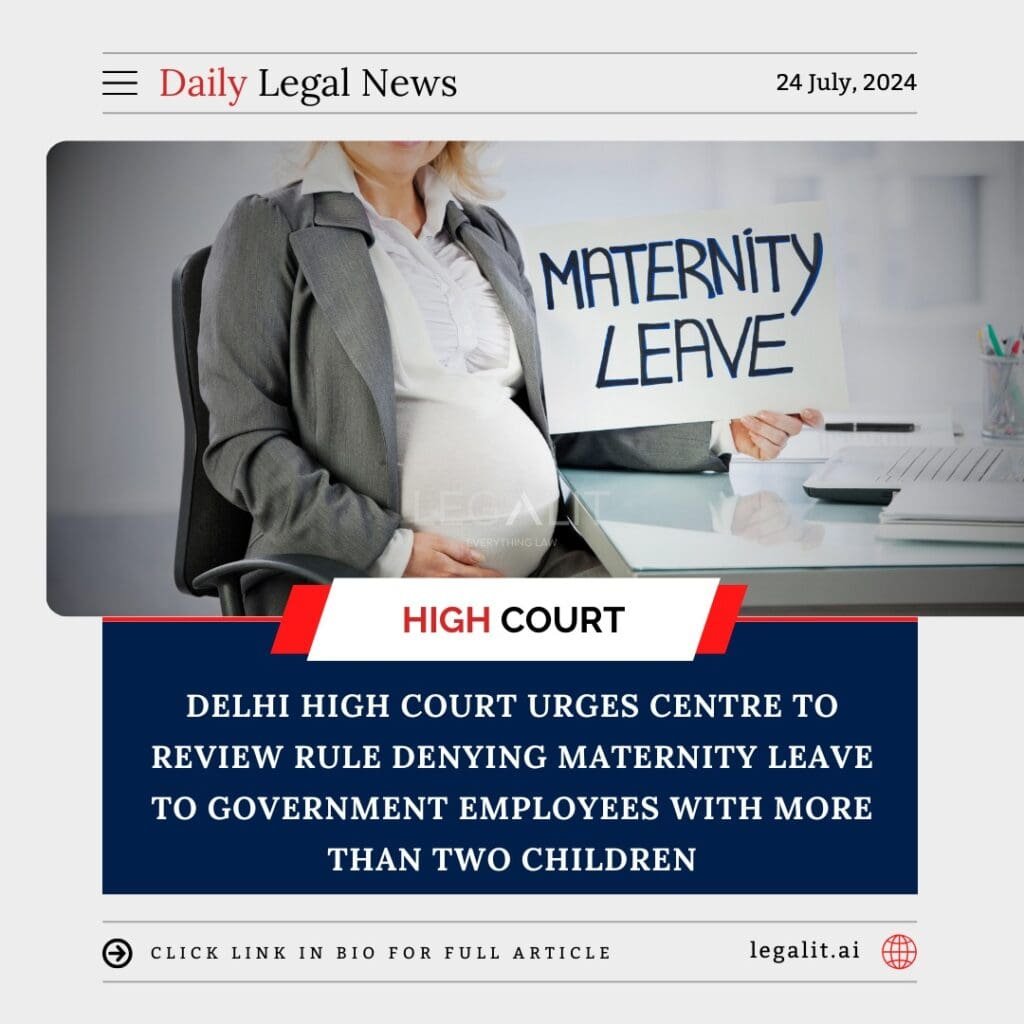 The Delhi High Court has urged the Central Government to reconsider its policy that denies maternity leave to female government employees who have more than two children. The court highlighted the importance of maternity benefits as a fundamental right under Article 21 of the Constitution, which encompasses the right to bear and raise a child.