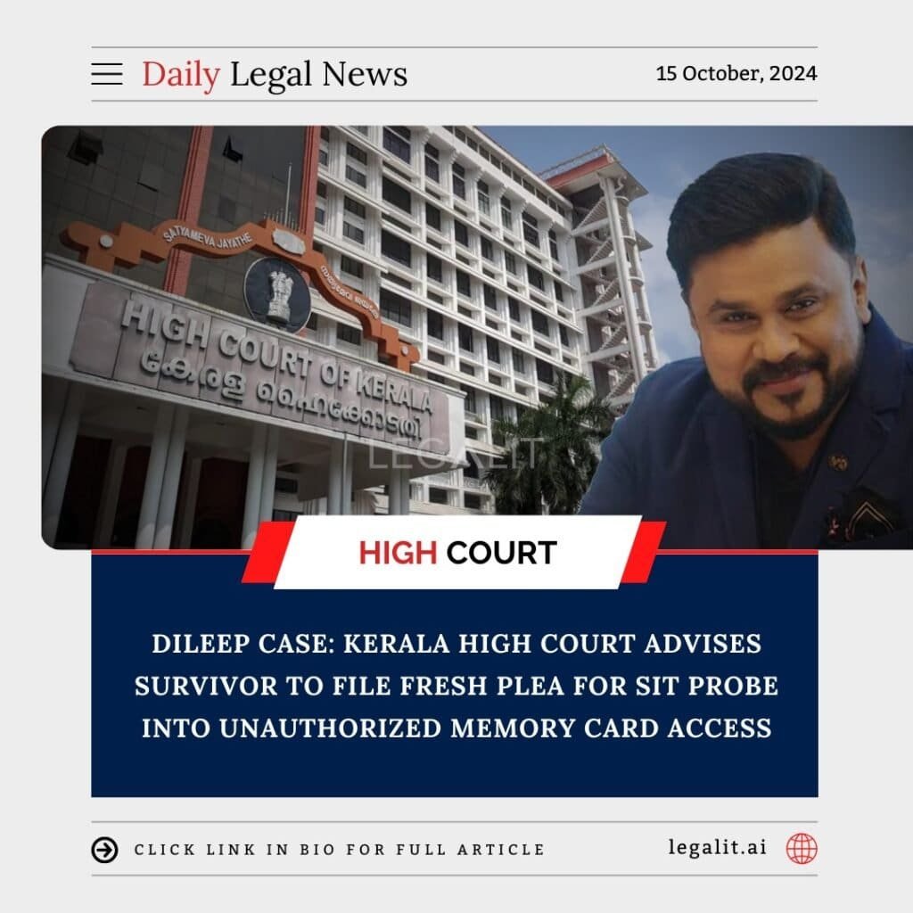 In a recent development regarding the Dileep case, the Kerala High Court has instructed the survivor to file a new plea for a Special Investigation Team (SIT) probe into allegations surrounding unauthorized access to a memory card containing sensitive material related to the case. This directive comes in light of concerns about the handling of evidence and the integrity of the investigation.