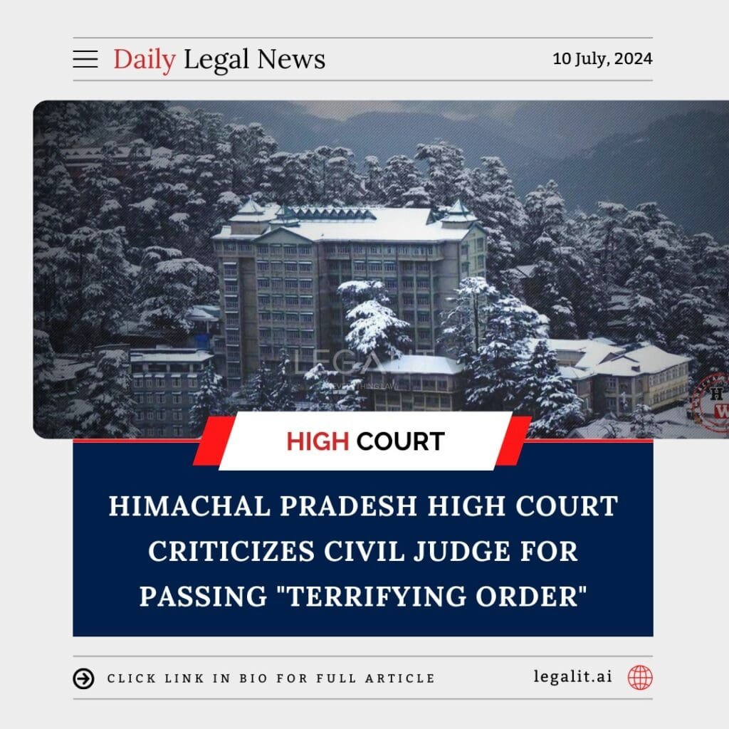 In a notable legal reprimand, the Himachal Pradesh High Court has expressed strong disapproval of a civil judge for passing what it described as a “terrifying order.” The High Court’s criticism centered around the procedural and substantive aspects of the lower court’s decision, which it found to be excessively harsh and legally unsound.