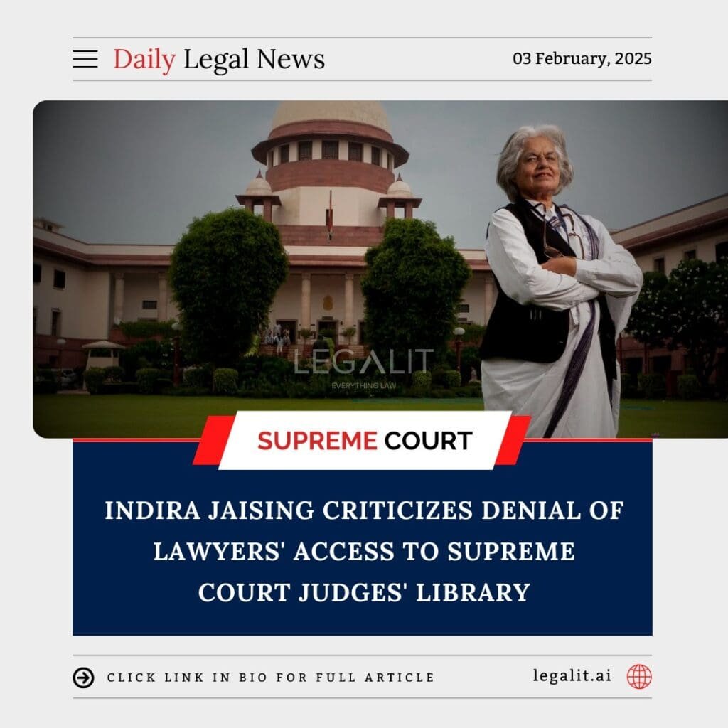 In a strong statement, senior advocate Indira Jaising expressed her disappointment over the recent decision to restrict lawyers’ access to the Supreme Court judges’ library. She termed the move as a direct blow to the fundamental rights of legal professionals and a hindrance to the efficient functioning of the judicial system. The controversy arose when the Supreme Court administration issued a directive preventing advocates from using the library, a facility long available to legal professionals for research and study.
