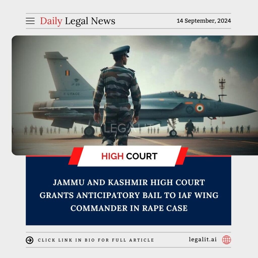 In a closely watched legal proceeding, the Jammu and Kashmir High Court granted anticipatory bail to an Indian Air Force (IAF) Wing Commander accused of rape. The court’s decision to provide pre-arrest protection in such a sensitive case has garnered attention, raising questions about the legal reasoning behind the ruling and the circumstances surrounding the allegations.