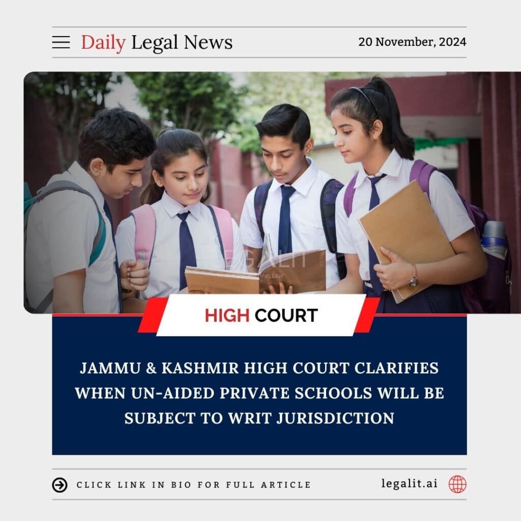 The Jammu & Kashmir High Court has clarified the circumstances under which unaided private schools will be subject to writ jurisdiction, offering a significant legal insight into the matter. The court addressed this issue during a hearing that questioned the authority of such schools in terms of their legal obligations and accountability.