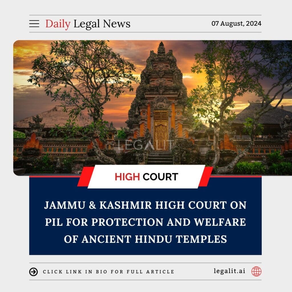 The Jammu & Kashmir High Court has issued a significant ruling in response to a Public Interest Litigation (PIL) seeking the protection and welfare of ancient Hindu temples and religious sites in the region. This ruling underscores the court’s commitment to preserving cultural heritage and ensuring the maintenance and security of historical religious sites.