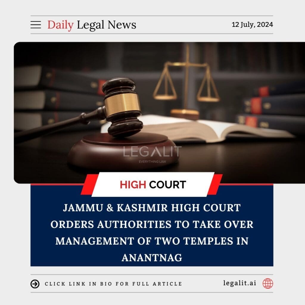 In a significant decision, the Jammu & Kashmir High Court has directed the local authorities to take over the management of two prominent temples in Anantnag district. This order aims to ensure the proper maintenance and administration of these religious sites, which have historical and cultural importance in the region.