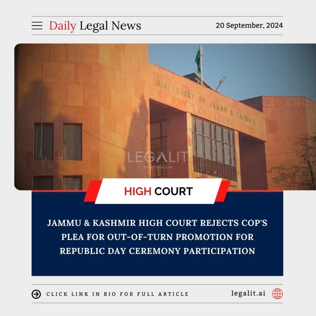 In a notable decision, the Jammu & Kashmir High Court rejected a police officer’s plea seeking an out-of-turn promotion for participating in a Republic Day ceremony. The officer had argued that his involvement in the prestigious event warranted special recognition in the form of a promotion. However, the court ruled that participation in such events does not automatically entitle officers to promotions unless explicitly provided for by policy or law.